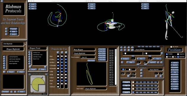 This screen show the front view with the traces and the tracers without model. The Top view and the Rightside view have the Model, the traces and the tracers. The is the view that should watched first then take the model away and watch the traces and their relationships.